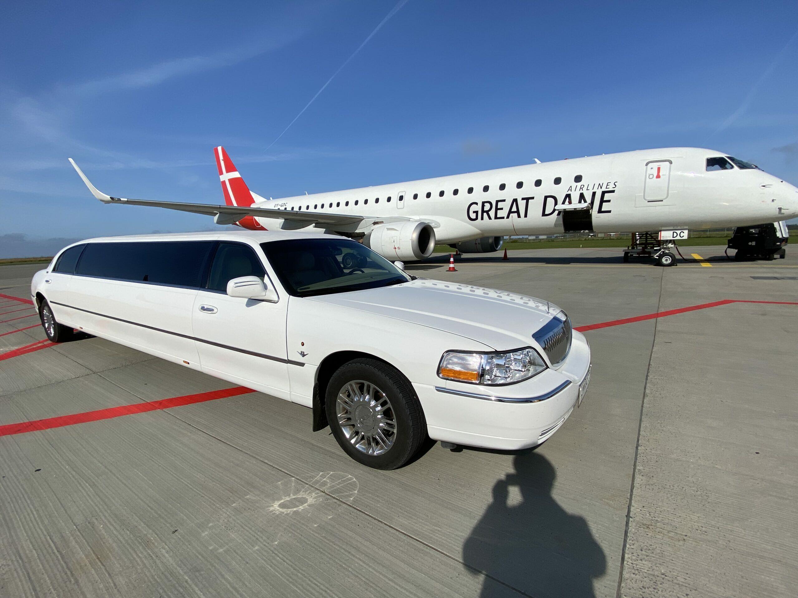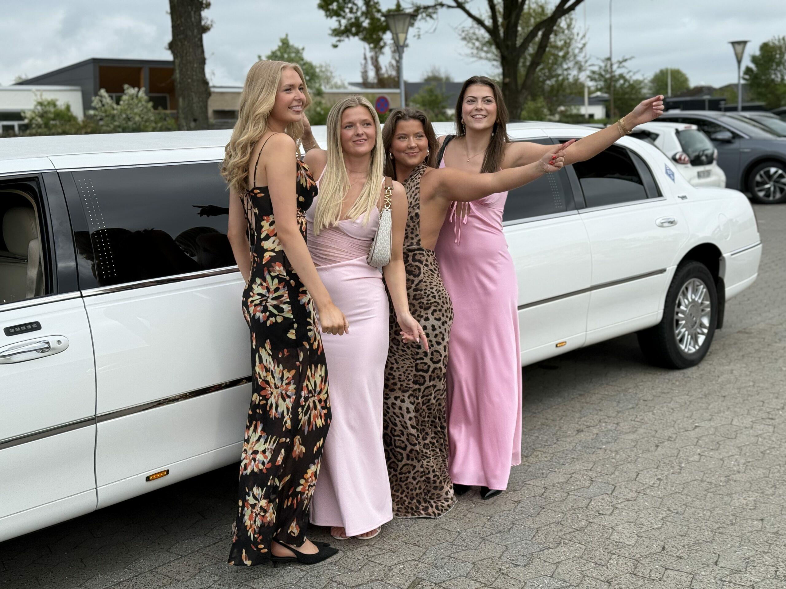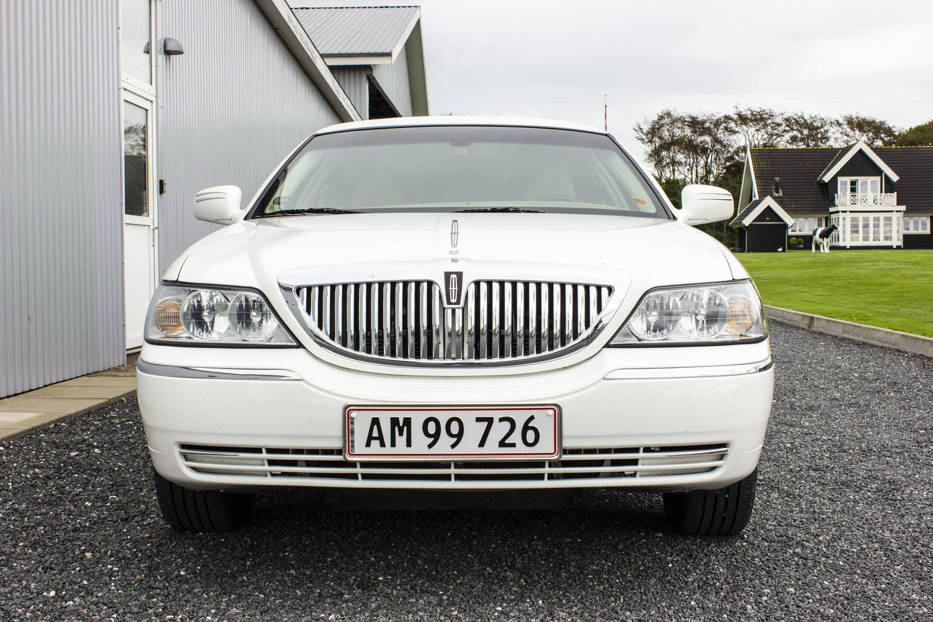 Lincoln Town Car – Vores nyeste bil, som vi selv har fået fremstillet i USA, blev leveret i 2019. 9,5 meter lang, hvid amerikansk V8-limousine med soltag, tonede el-ruder, hjørnesofa, aircondition og lyst læderinteriør. Mange muligheder i lys, bar, fryser, intercom, skærm til DVD/CD og iPhone-tilslutning.